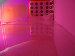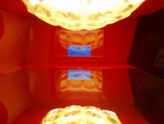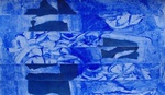 2010Deze installatie bestaat uit drie delen, een vilten vaas met houten bodem, een tafeltje en houten frame van een spiegel, alle ultramarijn geschilderd. De kleur die ooit ultra mare, over de zee, kwam.